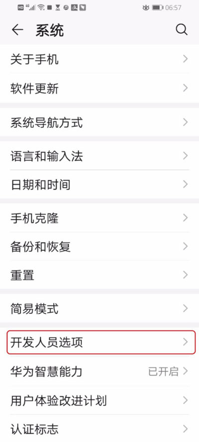 2、在系统设置中,点击【开发人员选项】设置;