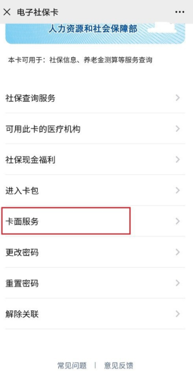 打开电子社保卡,如图,点击【卡面服务】,