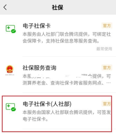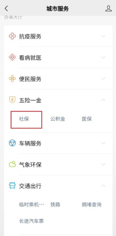 进入城市服务界面,如图,点击【社保】,然后点击【电子社保卡】,
