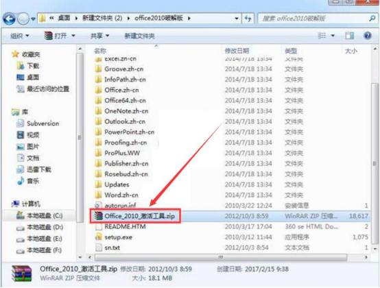 1.首先,我们可以从本站下载Office 2010 toolkit激活工具,下载后将它解压。