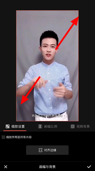 使用双指缩放视频画面,直至出现自己想要的放大效果,点击【√】,
