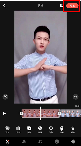 视频剪辑处理完成,点击上方的【导出】,即可导出保存视频。