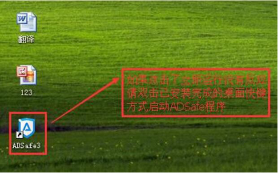 2.如果发现没有反应的话,就双击电脑桌面的ADSafe净网大师快捷图标来启用ADSafe程序。