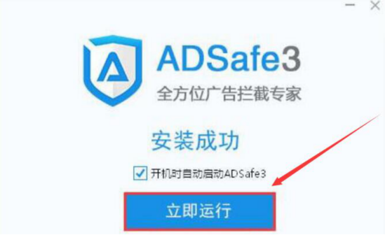 1.首先,我们将原来的ADSafe净网大师卸载,并在本站重新下载ADSafe净网大师,根据它的安装向导,完成安装,点击“立即运行”按钮。