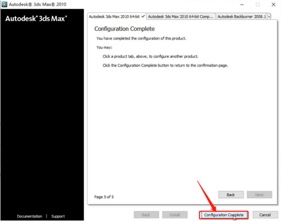 12.点击“Configuration Complete”按钮完成3dmax2010的配置。