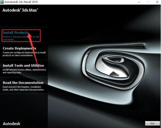 3.在3dmax2010安装向导页面,点击第一个选项,如下图所示。