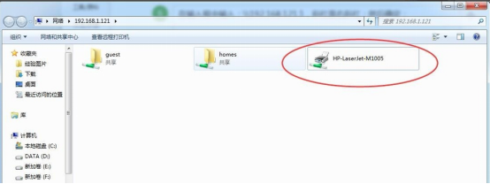 6、弹出网络连接窗口,双击共享打印机图标。