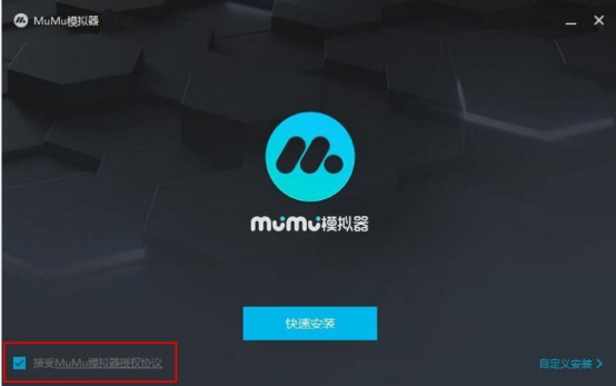 3、弹出安装界面,勾选“接受mumu模拟器协议”,然后点击【自定义安装】。