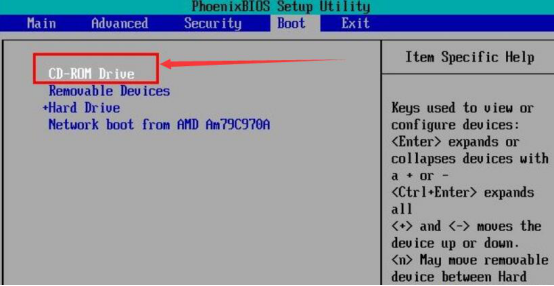 2.出现开机画面是按F12进入Boot选项卡,并将该驱动光盘设置为首要的启动方式,如下图。