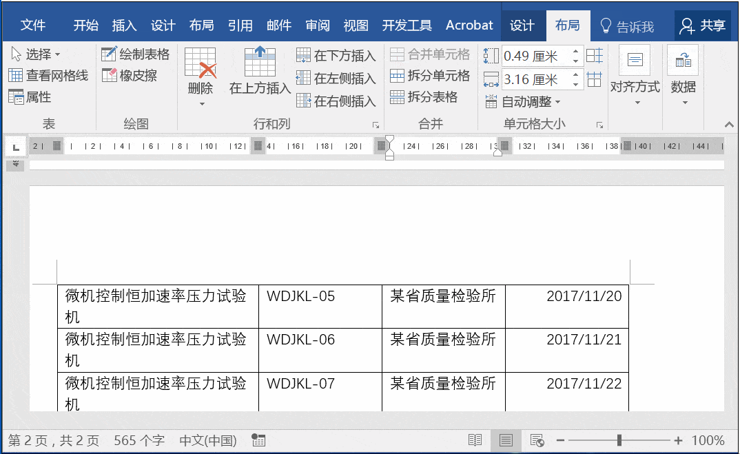 如图,Word表格中的文字只显示一半,这是为什么呢?其实这个问题很好解决,点击【 表格属性】,选择【行】,设置【行高值】为最小值即可。