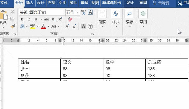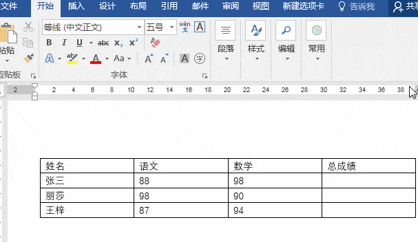 打开Word文档,如图,要求计算表格中的总成绩,选中目标单元格,然后在菜单栏点击【布局】——【数据】——【公式】,选择函数,点击确定,即可进行计算;然后将数据结果复制粘贴到其他单元格,点按F9键,即可获得正确数据。