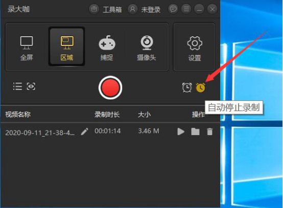 10.当然了,如果想要停止录制一些不需要的内容,也要注意录大咖使用技巧,点击界面中的“自动停止录制”按钮。