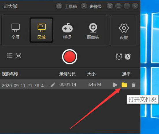 4.很多人在使用录大咖录完视频后,却不知道从哪里找出该视频。它是有小技巧的,我们从文件列表中找到自己录制的视频文件,从中点击“打开文件夹”图标从而快速找到视频存放的路径。