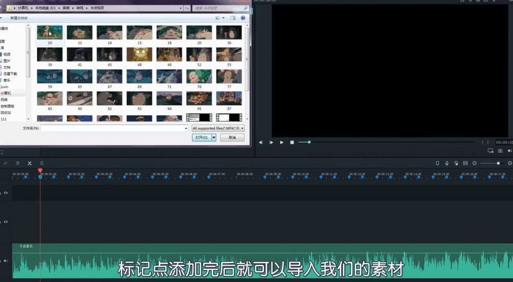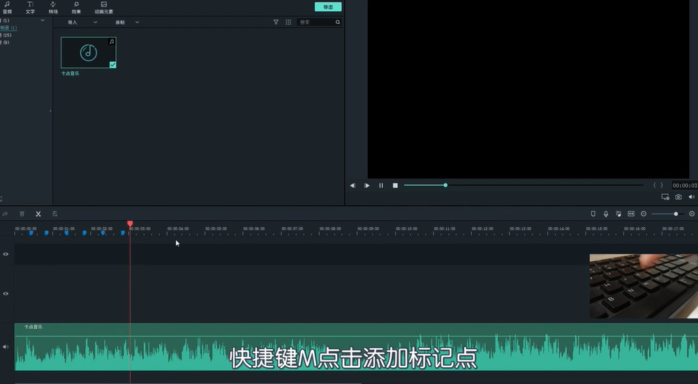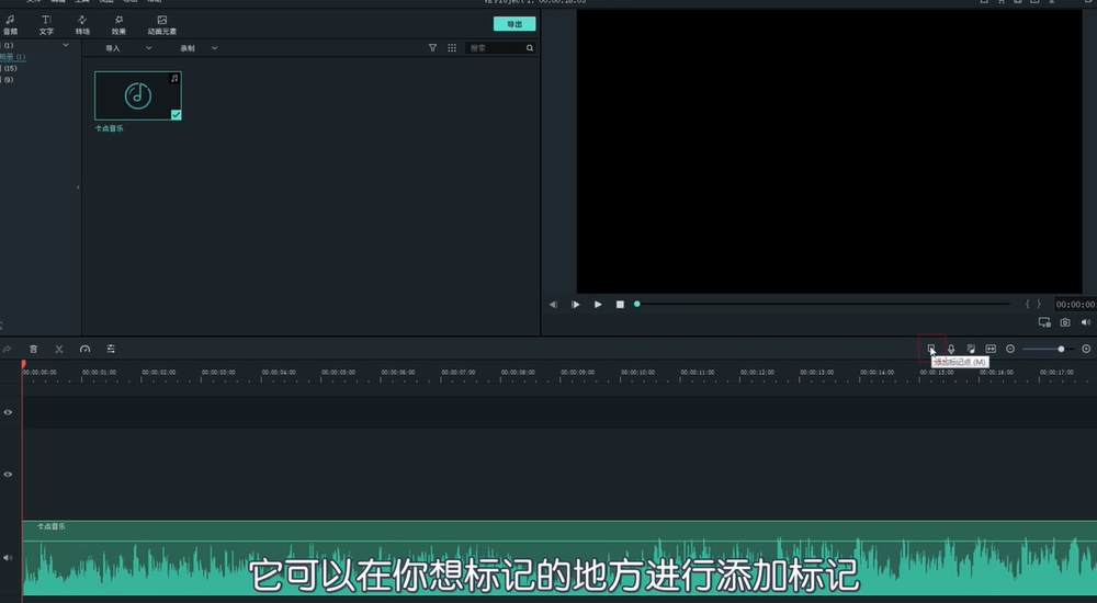 如图,点击视频预览窗口下方的添加标记,一边听一边配合快捷键m来添加标记,