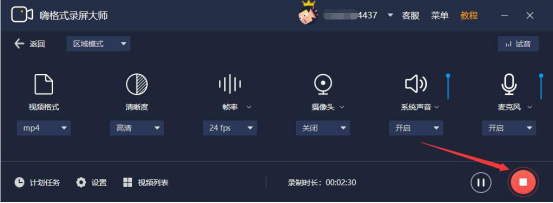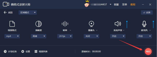 3.然后,进入嗨格式录屏大师的区域模式设置窗口,将格式等参数设置完成后,点击红色的“REC”按钮。