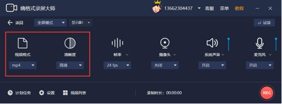 2.在选择视频格式和清晰度的时候,也是有技巧的。我们一般选择它默认的MP4通用格式和高清录制,这样能避免后续转换视频格式的麻烦。