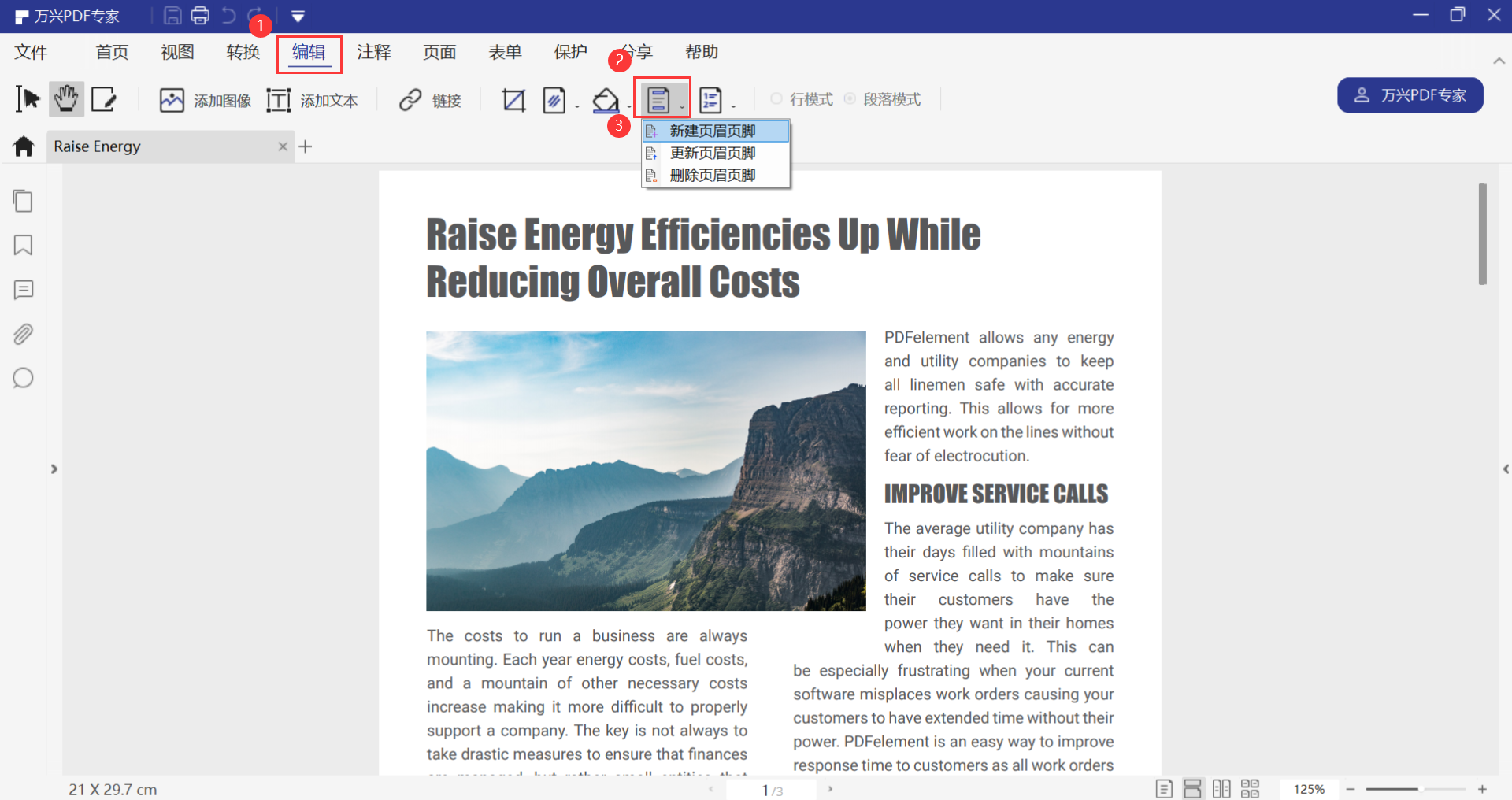 我们在编辑Word文档时可以插入页眉页脚,用于添加页码、日期等,同理,如果想在PDF文件中编辑页眉页脚,也是能够轻松实现。下文介绍了使用万兴PDF专家编辑页眉页脚的方法,请看说明。