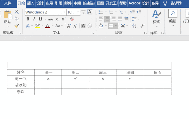 打开一个Word文档,如图,选中指定区域,在菜单栏点击【开始】——【字体】,将字体设置为Wingdings2,然后输入大写字母P或O,即可打出√或×。