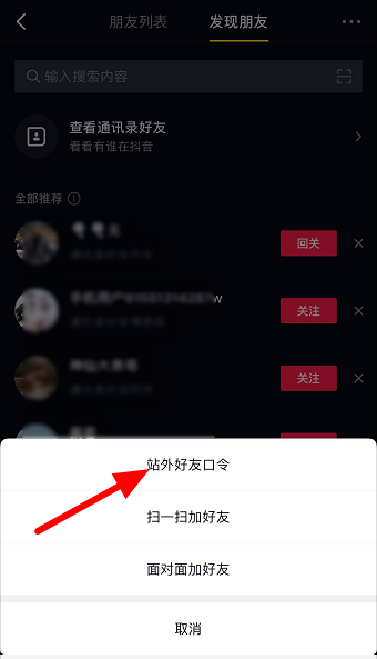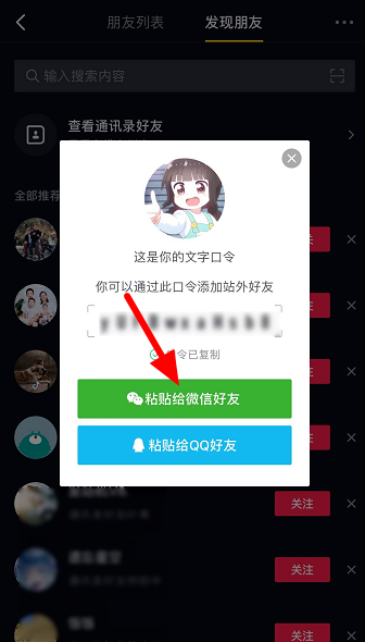 底部出现弹窗,如图,点击【站外好友口令】,
