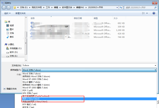 2、点击左上角文档图标—【另存为】—【其他格式】,弹出另存为窗口,将文件名设置为“1”,将保存类型设置为“网页(htm、html)”,保存备用。
