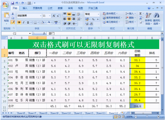 Excel格式刷使用技巧