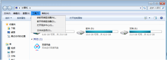 1、打开计算机,点击菜单中的【工具】,在其下拉菜单中选择【文件夹选项】。