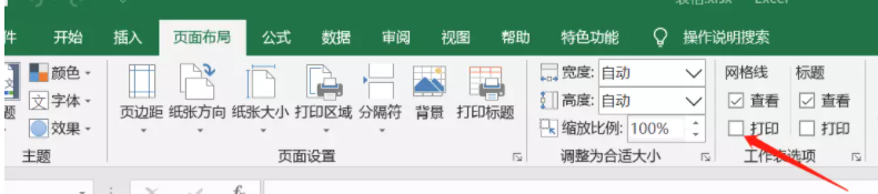 在顶部菜单栏点击【页面布局】——【工作表选项】,然后选择【打印】,