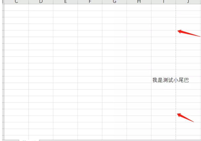 打开Excel工作簿,如图,查看箭头指示位置,这里有文字内容,现在查看这段文字是否超出打印范围,