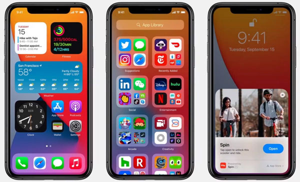 • 重新设计的 Apple 小组件包括:天气、时钟、日历、新闻、地图、健身、照片、提醒事项、股市、音乐、视频、提示、备忘录、快捷指令、电池、屏幕使用时间、文件、播客和 Siri 建议