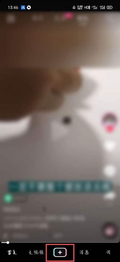 5、打开抖音短视频,点击最下方的【+】按钮进入视频发布拍摄页面;