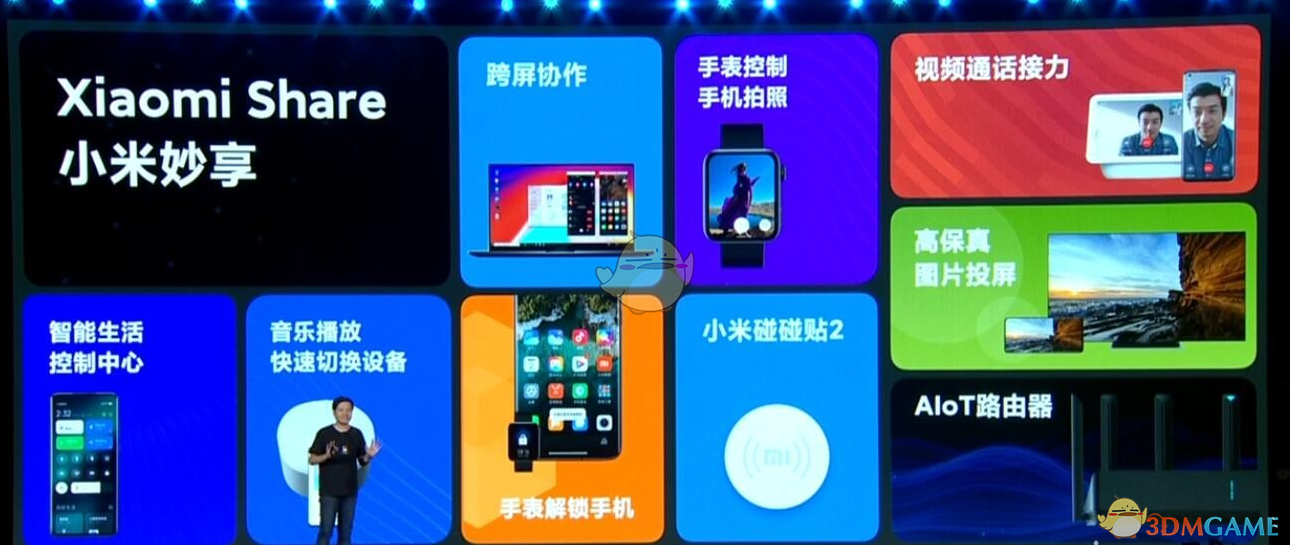 小米妙享可以支持多个设备的联动,包括通过AloT路由器实现和笔记本跨屏协作、手表控制手机拍照、视频通话、高保真图片投屏、手表解锁手机、音乐播放、快速播放设备也是智能生活的控制中心。