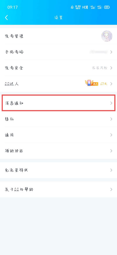 3、在设置中,选择【消息通知】设置,点击进入设置消息;
