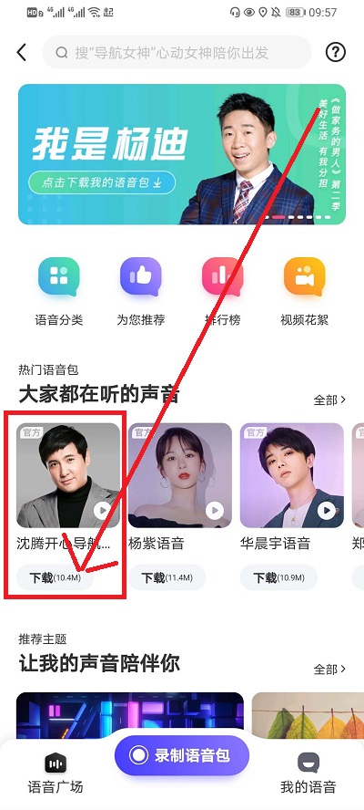 3、在语音包界面,可以看到热门语音包,点击沈腾的语音包点击下载。