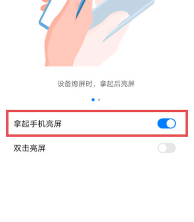 4、最后在设置页面中,开启【拿起手机亮屏】功能;
