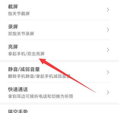 3、选择【亮屏】设置,设置手机抬起、双击亮屏;