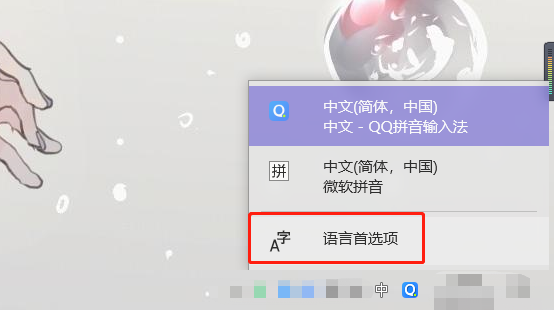 1、在win10桌面的右下角,在任务栏中点击输入法图标,选择【语言首选项】;