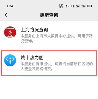 4、最后选择需要查看的拥堵类型为【城市热力图】;