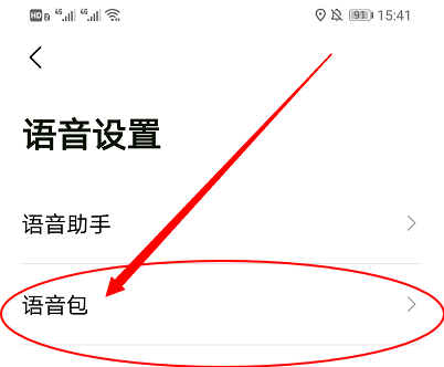 4、在“语音设置”界面中点击下方的语音包,点击进入“语音包”界面。