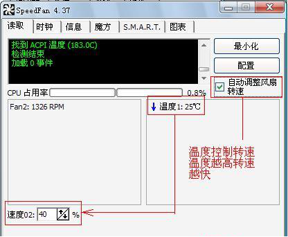以上就是关于speedfan怎么设置自动调风扇的介绍。需要注意的是,在使用SpeedFan前要确认用户电脑的控制芯片是否支持,风扇所在插座是否有调速功能,否则自动调风扇是无法通过speedfan实现的。