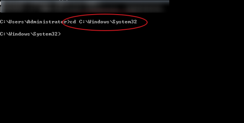 4、弹出DOS命令窗口,输入“cd C:\\Windows\\System32”,然后回车。注意:“cd”后面有一个空格。