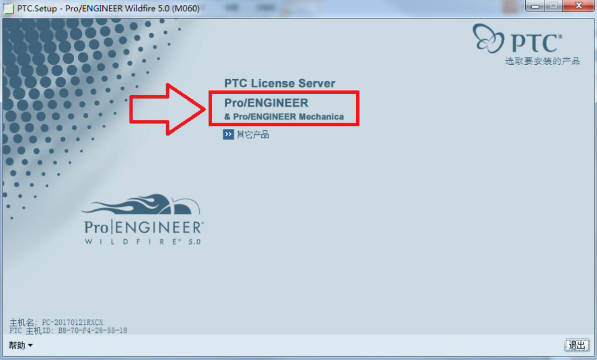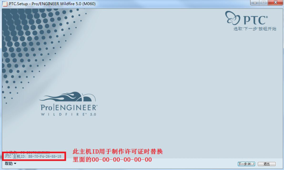 1、首先,我们打开proe5.0的主应用程序,可以在界面左下方看到主机的ID,我们要将它记住,因为后面会用得上。