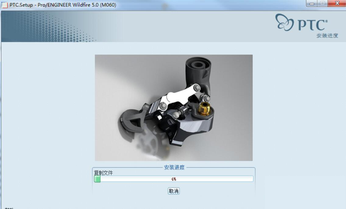 12、proe5.0的主程序便正式开始安装。待安装完成了,我们将该窗口关闭。