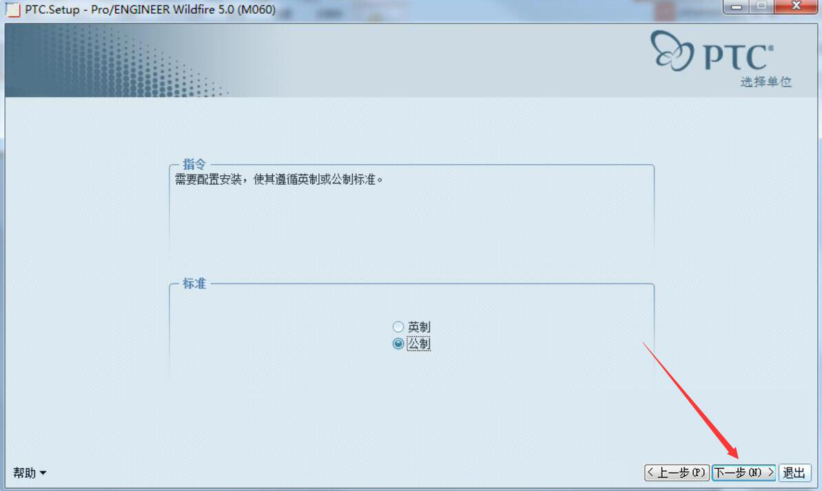 7、再根据自己的情况来选择“公制”还是“英制”,一般情况下,我们选择“公制”,点击“下一步”按钮。