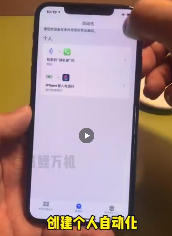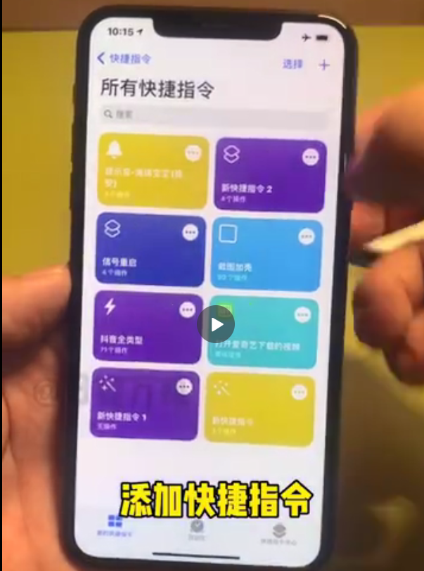 16、来到快捷指令界面,点击下方的中间导航栏,进入自动化;