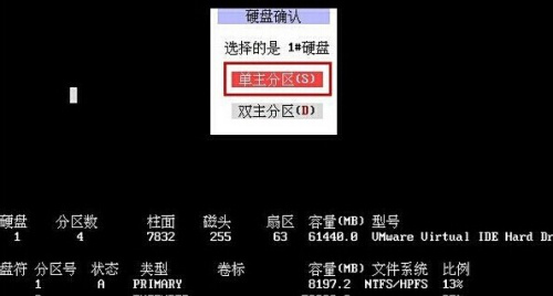 6、接着会出现硬盘确认弹窗,这里可以选择单主分区或双主分区,一般来说,我们选择【单主分区】就好。