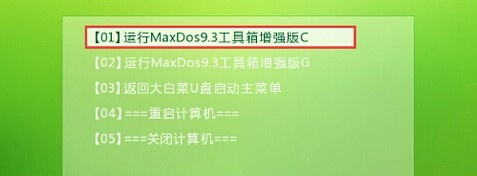 2、这样就进入到MaxDos工具箱选择界面,选中【运行MaxDos9.3工具箱增强版C】,之后点击ENTER键。