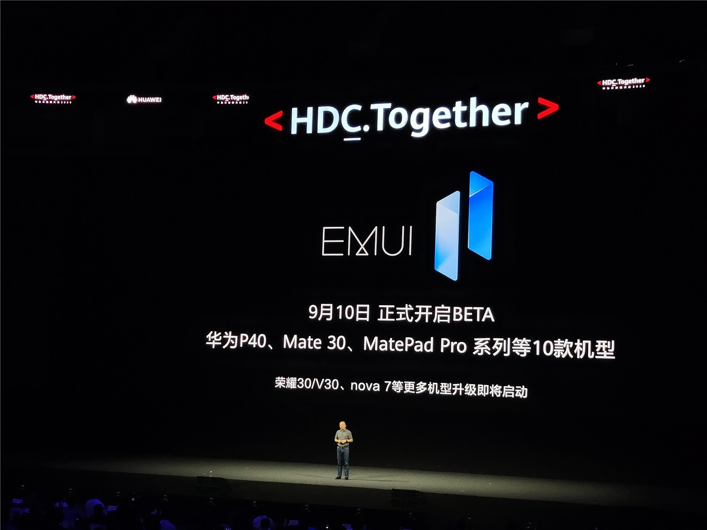 EMUI 11 于2020年9月10日正式开启 BETA,同时适配的机型有:荣耀V30、V30 pro、荣耀V20、荣耀20 pro、荣耀20s、荣耀20青春版、Edition、荣耀9XPro还有荣耀30系列、荣耀X10系列,还有为Mate 30 pro、Mate 30、Mate 30 RS、Porsche Design.Mate 20X/pro、Prosche RS、Mate X、Mate40系列、华为P40 /pro、HUAWEI P30/pro、华为Nova系列:Nova7系列、Nova 6系列、Nova5系列、华为平板M6系、华为MatePad机型升级即将启动。华为称,EMUI 11 将适配超过 50 款华为手机,预计装机量超 2 亿台,预计将有 90% 的升级率。