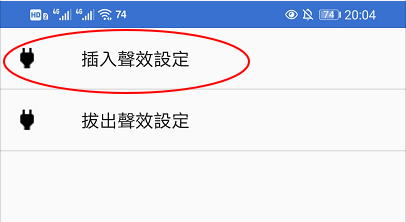 4、在声音界面可以看到插入音效设定,点击进入(下方的拔出音效设定和插入步骤一样,下面就不说了)。