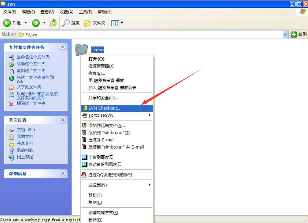 1、首先,我们可以在本站下载Tortoisesvn,安装完成,随便创建一个文件夹,并且右键点击该文件夹,在右键菜单中点击“SVN Checkout”,从而拉取远程Tortoisesvn库文件。