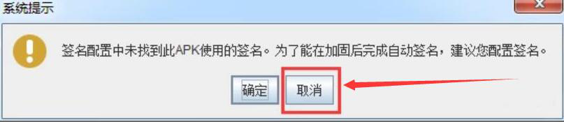 3、此时,360加固助手便会弹出如下图窗口,我们点击“取消”按钮,360加固助手便开始加固该安装包。